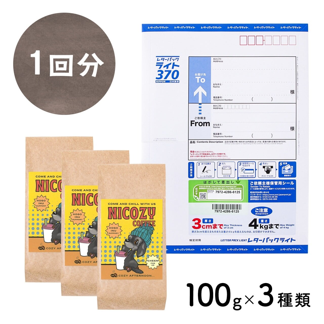 保護犬活動支援のためのチャリティーコーヒーです。 一度飲んだらその美味しさに驚くかも? 世界で流通しているコーヒー豆の中でも、特に高品質で美味しい「スペシャルティコーヒー」を100gずつ3種類のセットにしました。 この商品のお買い上げ価格のうち、20%をクリスタルゼロワンプロジェクトを通じて、埼玉県の動物保護団体「アグリドッグレスキュー」様に寄付致します。 どの種類になるかは店主におまかせ。苦い豆は苦手...などのご希望がありましたら、ご注文時に備考欄にてお知らせください。 元・保護犬の「ニコ君」の可愛いイラスト(lea lea ilio のMikiさん作)が印象的なパッケージでお届けします。