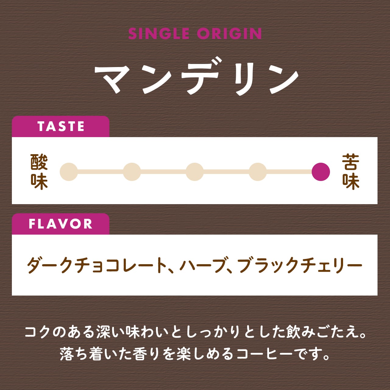 大粒で独特の苦みと濃厚なコクが特徴です。